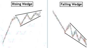 Wedges are consolidation patterns that resemble triangles but have converging trendlines.